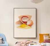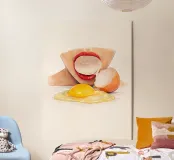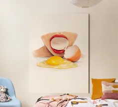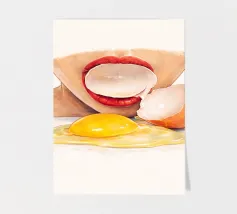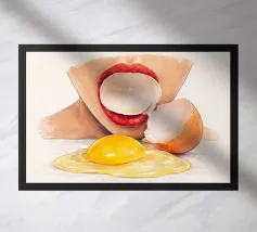 Questa opera d'arte è tratta da una performance video che ho creato, esplorando la freschezza, la sensualità e gli oggetti di uso quotidiano in modo giocoso e minimalista. Lo stile morbido dell'acquerello e la composizione pulita si concentrano su un paio di labbra rosse che interagiscono con un uovo, trasformando una scena semplice in una dichiarazione visiva audace e intrigante. Perfetto per cucine moderne, studi creativi e interni contemporanei. fresco minimale acquerello poster arte dell'uovo labbra arte pop contemporaneo arte in cucina surreale concettuale sensuale colori audaci arte da parete moderna arte del cibo