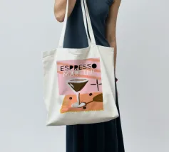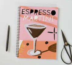 espresso martini caffè cocktail chicchi di caffè bicchiere da cocktail bevanda bevanda alcool cioccolato guarnire tavolo tovaglietta testo scritte ombra paglia ricetta cocktail illustrazione design grafico