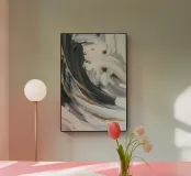 "Colors collide, textures emerge modern abstraction is the dance between canvas and imagination."