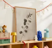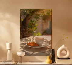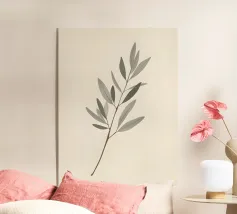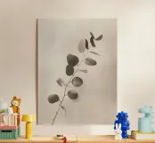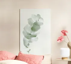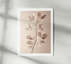 Una raffinata stampa fotografica di uno stelo di eucalipto catturato con una luce morbida e naturale su un caldo sfondo beige. La composizione, elegante e minimalista, è un accento perfetto per gli interni moderni, japandi o scandinavi. Questa stampa emana calma ed equilibrio, ideale per camere da letto, soggiorni o spazi creativi.