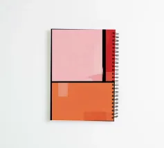 Questo quadro astratto geometrico è una composizione rigorosamente strutturata di aree rettangolari di colore separate da spesse linee nere, simili a un mosaico o a una finestra. La tavolozza dei colori si concentra su toni caldi e terrosi: varie tonalità di rosa, salmone, rosso e arancione, con alcune aree che mostrano sottili sovrapposizioni e texture. La disposizione è asimmetrica e ricorda il movimento De Stijl, ma con una scelta di colori più morbida. L'opera emana calma ed equilibrio, nonostante i confini netti e rigidi.