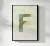 F-TYPEFACE in un design senza tempo - poster tipografico con colori vivaci e un gioco di forme sullo sfondo.