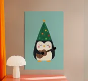La piccola Pinguina indossa il suo allegro cappello da albero di Natale, imbraccia la chitarra e riempie la notte innevata di soffici "fa la la la~". Il Natale è quasi arrivato! : )
