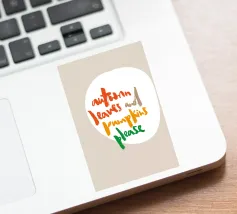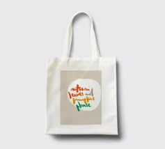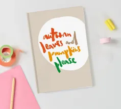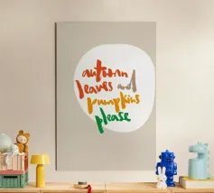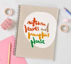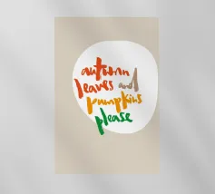 Brush Lettering Motiv "Foglie d'autunno e zucche per favore" in knalligen Herbstfarben