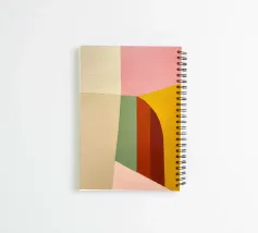Design minimalista e misterioso con blocchi di colore in rosa pastello, giallo senape, rosso tenue e verde. Le texture oleose su sfondo bianco creano profondità e ricordano l'arte moderna di metà secolo.