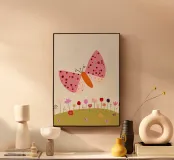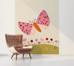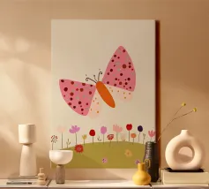 Butterfly and flowers, nursery art, kid's wall art