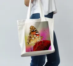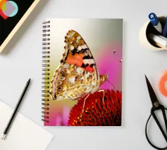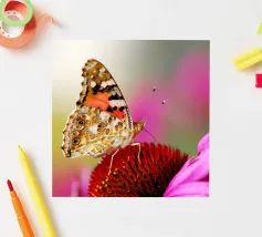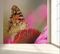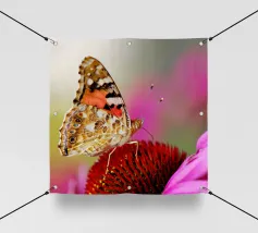 Farfalla di cardo su un fiore di conifera (Echinacea), fotografia macro