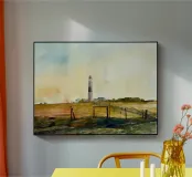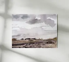 Questo suggestivo acquerello di Hartwig Marahrens cattura in modo pittoresco il caratteristico paesaggio dell'isola di Sylt.
