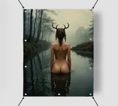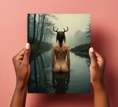 In questo momento, si fonde con l'ambiente circostante, un essere di un altro tempo che condivide la solitudine del lago. La sua presenza nel lago è una silenziosa poesia della natura che parla della connessione di tutte le cose. In questo ambiente immobile e nebbioso, il fauno trova una profonda pace interiore e la sua tristezza si trasforma in una dolce accettazione. È un tutt'uno con il lago, la nebbia e il mondo che la circonda.