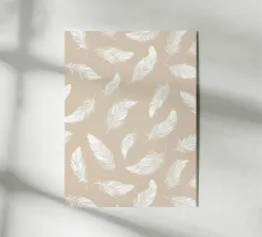 Questa opera d'arte digitale con motivo di piume in beige pastello mette in mostra la composizione unica dell'artista. Il motivo ripetuto di piume reso in stile digitale in beige pastello crea un senso di armonia. Perfetto per chi apprezza l'arte digitale.