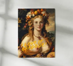 Un colorato mix di epoche che unisce la perfezione dei vecchi maestri e le eleganti fotografie dei tempi passati al ritmo della strada: puro evasione per il buon umore. Rinascimento e street art si fondono in un sogno surreale, le delicate ombre chiaroscurali di Caravaggio si mescolano con le casuali macchie di colore e l'energia ribelle della scena dei graffiti, dando vita a istantanee vibranti. Mondi onirici colorati con frammenti di fiori colorati come finestre su un mondo di fantasia e gioia di vivere. Arte che non vuole insegnare, ma trasportare o semplicemente essere la risposta a una buona giornata: rumorosa, spesso colorata e piena di ottimismo.