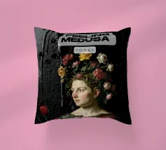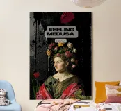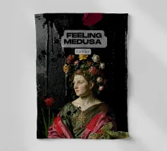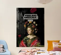 Collage digitale. In questo collage digitale, il ritratto inserito in stile rinascimentale è stato creato con l'aiuto dell'intelligenza artificiale. L'intero lavoro è stato poi rifinito manualmente e ancora oggi ci ricorda il destino raccapricciante e, a ben vedere, piuttosto ingiusto della medusa uccisore di uomini.