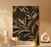 Verdi terrosi e neutri sbiaditi formano un elegante motivo di sagome botaniche, consumate in un carattere vintage. La consistenza e le pieghe invecchiate conferiscono a questo studio di fogliame minimalista la sensazione di un frammento di carta da parati di recupero o di una stampa di tessuto d'archivio: naturale, imperfetta e splendidamente consumata dal tempo.