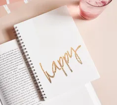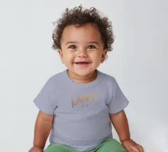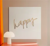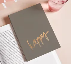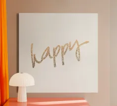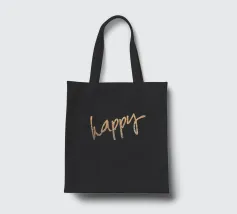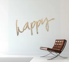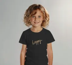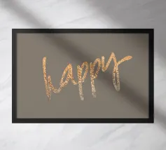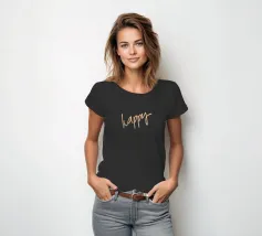 Questo motivo semplice ed elegante con la parola "happy" conferisce a ogni prodotto un'aura positiva e porta un sorriso sul viso. La scritta a mano in un elegante look dorato dona uno stato d'animo leggero e allegro e si adatta perfettamente a magliette, tazze e molti altri accessori. Ideale per chiunque voglia integrare piccoli momenti di felicità nella propria vita quotidiana. © di Monika Strigel