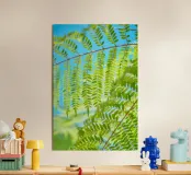 A fern leaf with delicate, feather-like fronds unfolding in graceful symmetry.