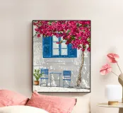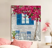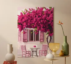 festa di due bouganville grecia santorini viaggio estate architettura bianco edificio tropicale esotico destinazione amore coppia sedie all'aperto
