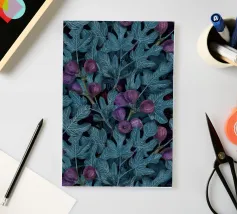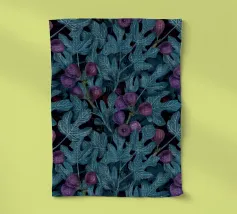 Fichi acquerellati dipinti a mano con foglie, motivo senza cuciture