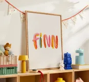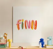 Il nome "Finn" è composto da pennellate colorate e allegre.