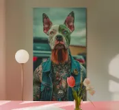 Composizioni assurde con cani umani. Cani umani che, come noi, vivono a Parigi, Los Angeles o Londra e che, come noi, sono appassionati di moda, di automobili o di niente. Cani disillusi, divertiti o amati. Hippy e cani tatuati. Insomma, cani che sono proprio come noi. O noi siamo come loro? Tuffatevi nel mondo artistico di Dogland, una collezione esclusiva dedicata a tutti coloro che considerano il proprio cane un membro della famiglia. Qui, ogni poster di cane è un'opera d'arte pensata con umorismo, tenerezza o eleganza. Che siate appassionati di bulldog, bassotti o corgis, troverete il poster da parete che farà abbaiare di felicità la vostra casa. Aggiungete un tocco canino alle vostre pareti con illustrazioni originali, stampate su carta di qualità, pronte a sublimare i vostri interni. Dogland è più di un negozio: è una dichiarazione d'amore per i cani.