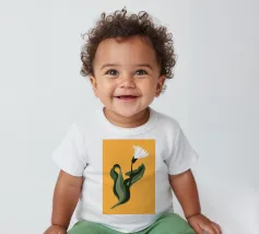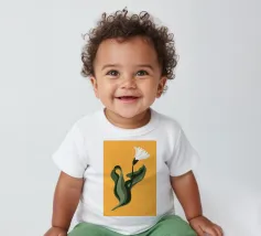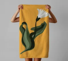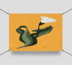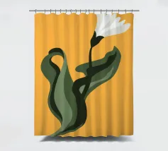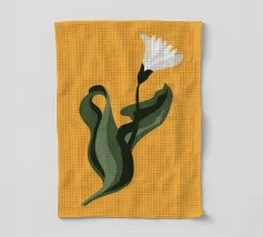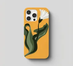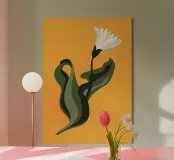 Un delicato giglio bianco con foglie verdi su un caldo sfondo dorato, che emana calma ed eleganza.
