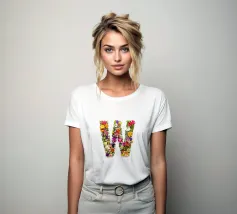 Il disegno può essere personalizzato: potete ordinarlo così com'è (basta non modificare nulla nella pagina di personalizzazione e aggiungerlo direttamente al carrello). Oppure potete aggiungere un nome completo in caratteri neri semplici sotto la lettera del fiore, ad esempio.