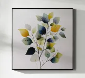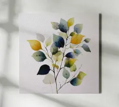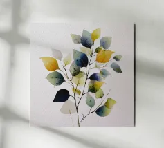 Questo acquerello cattura un delicato ramo di foglie con morbide pennellate di verde, oro e indaco. Le forme sciolte e organiche e le sfumature delicate evocano un senso di movimento calmo, mentre sottili schizzi di inchiostro aggiungono spontaneità e consistenza. È un tranquillo studio della luce, della crescita e dell'imperfezione.