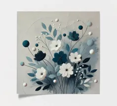 Il colore applicato crea una texture vivace, quasi tangibile, che infonde vita ai fiori. Nonostante le pennellate decise, il dipinto irradia una struttura calma che pone lo spettatore in un dialogo tranquillo con la natura. I colori blu e bianco si armonizzano perfettamente e trasmettono una sensazione di pace e innocenza. Quest'opera d'arte è un'ode alla bellezza tranquilla e travolgente della natura, toccante nella sua semplicità e profondità.