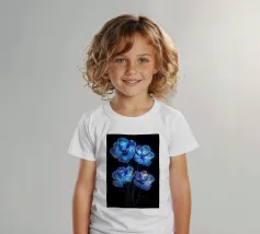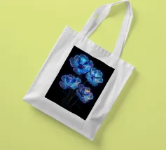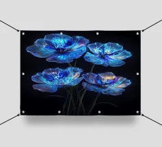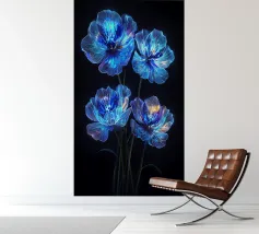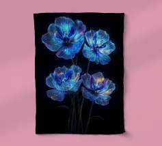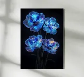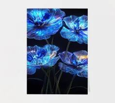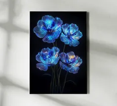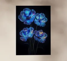 Questi fiori eterei, apparentemente creati con polvere di stelle e luce lunare, irradiano un bagliore accattivante contro lo sfondo color inchiostro. I loro petali traslucidi, ornati da delicate venature di luce, evocano un senso di bellezza ultraterrena. Questo pezzo accattivante è una testimonianza del potere dell'immaginazione e del fascino del celeste.