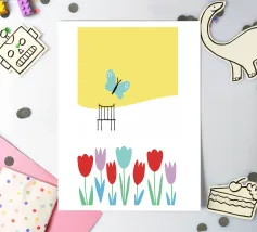 La bellezza senza tempo della natura! Questo elegante disegno presenta incantevoli fiori e farfalle che danzano tra i petali.