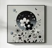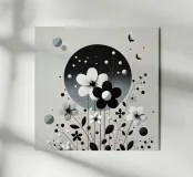Il colore applicato crea una texture vivace, quasi tangibile, che infonde vita ai fiori. Nonostante le pennellate decise, il dipinto irradia una struttura calma che pone lo spettatore in un dialogo tranquillo con la natura. I colori bianco e nero si armonizzano perfettamente e trasmettono una sensazione di pace e innocenza. Quest'opera d'arte è un'ode alla bellezza tranquilla e travolgente della natura, toccante nella sua semplicità e profondità.