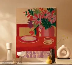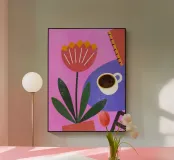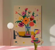Design di fiori pop retrò: Evolvete il vostro stile con il nostro moderno design di fiori pop retrò! Una combinazione di colori vivaci