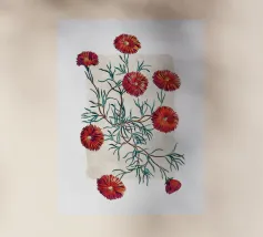Disegno vintage rimasterizzato di un fiore rosso.