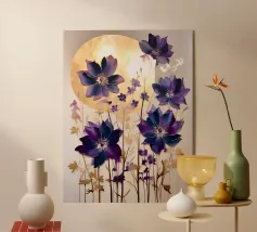 Il colore applicato crea una texture vivace, quasi tangibile, che infonde vita ai fiori. Nonostante le pennellate decise, il dipinto irradia una struttura calma che pone lo spettatore in un dialogo tranquillo con la natura. I colori viola e bianco si armonizzano perfettamente e trasmettono una sensazione di pace e innocenza. Quest'opera d'arte è un'ode alla bellezza tranquilla e travolgente della natura, toccante nella sua semplicità e profondità.
