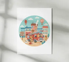 Questa deliziosa illustrazione cattura una vivace casetta dei pompieri sull'albero, piena di lavoro di squadra, azione e gioco. Dallo scivolo per la manichetta, al salvataggio dei gatti e alla guida di mini autopompe, ogni dettaglio invita i bambini a entrare in un mondo di immaginazione e gentilezza. Perfetta per la narrazione e la decorazione delle pareti, questa opera d'arte stimola la curiosità e il coraggio dei piccoli cuori.