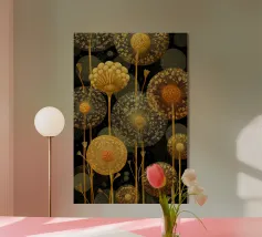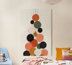 Un'impressionante esibizione di fuochi d'artificio astratti resi in una pulita geometria Bauhaus. Linee radianti e audaci esplosioni circolari illuminano la tela scura con un contrasto festoso e un tocco minimalista. Una celebrazione del movimento, del ritmo e della magia delle feste, perfetta per gli interni moderni alla ricerca di un tocco stagionale unico.