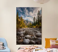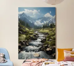 Trasformate la vostra stanza con l'accattivante bellezza della natura. Questa fotografia porta l'essenza della valle di Trollstigen sulle vostre pareti, con un fiume sereno che scorre attraverso una vegetazione lussureggiante circondata da maestose montagne. Perfetto per aggiungere un tocco di tranquillità e avventura a qualsiasi spazio, questo disegno permette di fuggire nel cuore dei grandi spazi aperti. Lasciate che il flusso d'acqua e il paesaggio vibrante ispirino i vostri momenti quotidiani, invitandovi a sperimentare il fascino naturale di questa meraviglia paesaggistica.