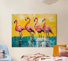 Stampa d'arte a parete di fenicotteri - Decorazioni geometriche tropicali Portate a casa vostra energia vibrante ed eleganza moderna con questa stampa artistica da parete di fenicotteri, che presenta due fenicotteri splendidamente dipinti a mano e reimmaginati attraverso un sorprendente motivo geometrico a rombi. L'opera d'arte originale è stata amorevolmente creata a mano ed è stata trasformata in una stampa di alta qualità, che vi permetterà di godere dei dettagli e della maestria nel vostro spazio. Perfetta per soggiorni, camere da letto, uffici o spazi creativi, questa opera d'arte di ispirazione tropicale combina il fascino giocoso dei fenicotteri con un tocco astratto contemporaneo.
