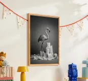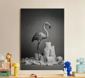 Chi ha detto che eleganza e umorismo non possono andare d'accordo? Questo disegno giocoso raffigura un fenicottero colto nell'atto di srotolare la carta velina, trasformando l'arredamento quotidiano del bagno in un momento stravagante. Perfetto per aggiungere fascino, colore e un sorriso alle vostre pareti.