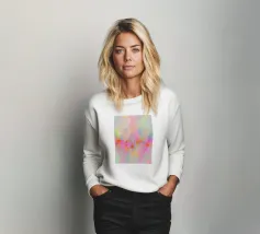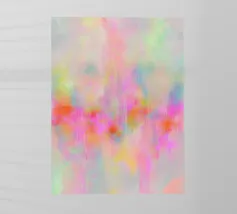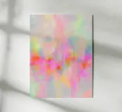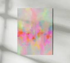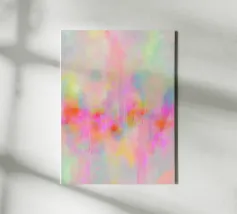 This abstract neon artwork depicts flowing areas of colour in pastel pink, yellow, blue, green and pink. The soft brushstrokes and harmonious pop art colour composition create a vibrant, dreamlike atmosphere. The motif appears modern, light and emotional, inviting free interpretation.