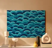 Un audace motivo astratto con un tocco di energia dinamica che simboleggia il movimento e la fluidità. Colori vivaci che evocano temi come l'acqua, la vita e il movimento. Una fusione innovativa di tradizione e modernità per interni contemporanei e minimalisti. Un linguaggio visivo unico che supera i confini culturali.