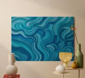 Un audace motivo astratto con un tocco di energia dinamica che simboleggia il movimento e la fluidità. Colori vivaci che evocano temi come l'acqua, la vita e il movimento. Una fusione innovativa di tradizione e modernità per interni contemporanei e minimalisti. Un linguaggio visivo unico che supera i confini culturali.