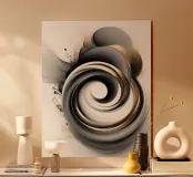 Creato da Florence Thibaut © Atelier-88 - Paris Un motivo astratto audace, vivace e incisivo, con un tocco di energia dinamica che simboleggia movimento e leggerezza. I colori nero e oro evocano temi come la polvere d'oro, l'inchiostro, l'evanescenza e la vibrazione. Un approccio sensibile al lirismo e alla modernità per interni contemporanei e minimalisti. Un linguaggio visivo unico che trascende i confini culturali.