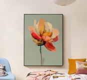Delicata esplorazione di colore, forma e trasparenza, "Floral Study" presenta una fioritura stilizzata resa in toni pastello stratificati di corallo, ocra e fard. La composizione bilancia fluidità e struttura, evocando sia la fragilità che la resilienza delle forme naturali. Con il suo sfondo minimale e il soggetto centrato, l'opera offre un'esperienza visiva serena, quasi meditativa, ideale per interni tranquilli e moderni.