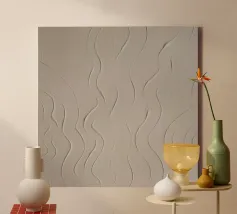 "Flow No. 6" è un sereno dipinto astratto in acrilico beige caratterizzato da eleganti linee strutturate che scorrono verticalmente dall'alto verso il basso. I toni morbidi e neutri e la profondità tattile creano un'estetica minimalista e rilassante, perfetta per gli interni moderni. Quest'opera d'arte astratta e strutturata aggiunge calore, movimento e stile contemporaneo a qualsiasi spazio, rendendola ideale per gli amanti dell'arte che cercano un arredamento neutro con un tocco scultoreo.