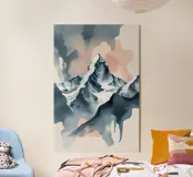 Scoprite l'ipnotica bellezza del K2 reimmaginata attraverso le tecniche astratte dell'acquerello. Quest'opera d'arte presenta pennellate fluide e morbide tonalità di blu e pesca, che catturano l'equilibrio tra l'aspra maestosità della montagna e la sua dolce eleganza. Il design fluido crea un'estetica moderna e rende omaggio al fascino senza tempo del K2. Perfetto per gli appassionati d'arte e gli amanti della natura che cercano un tocco di tranquillità e raffinatezza nel loro spazio.