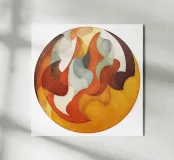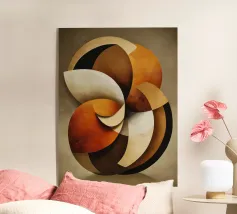 Flow of Things Abstract Circular Print – Warm Earth Tone Mid-Century Art mid-century modern stained glass and natural topographical patterns, the composition is unified by crisp white outlines that create a layered, three-dimensional effect. This high-contrast contemporary wall art is perfect for a minimalist living room, a serene bedroom, or as a focal point in a modern entryway. Its circular form offers a to any curated gallery wall.Circular Abstract Art, Flow of Things, Earth Tone Wall Decor, Mid-Century Modern Geometric, Organic Shapes Art, Warm Palette Abstract, Contemporary Living Room