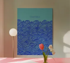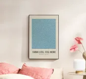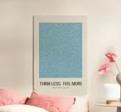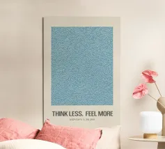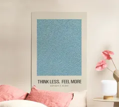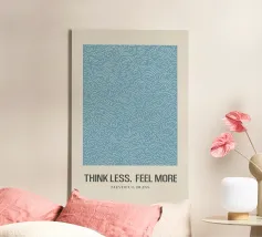 Questo poster meditativo combina un disegno dettagliato di vento e nuvole in uno stile di ispirazione giapponese con il messaggio di mindfulness "Think Less. Feel More - Mindful Bliss". La combinazione di colori blu cielo, fresca e rilassante, invita a fare un respiro profondo e crea un'atmosfera armoniosa. Ideale per sale di meditazione, interni tranquilli o come mantra visivo nella vita quotidiana.