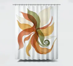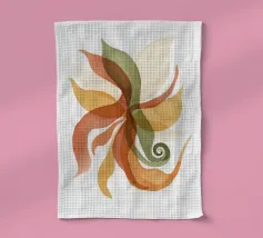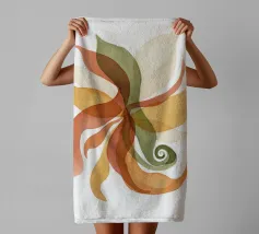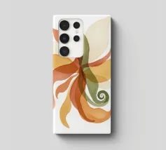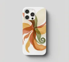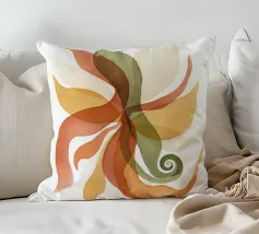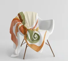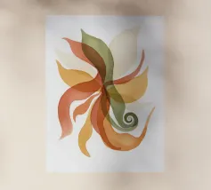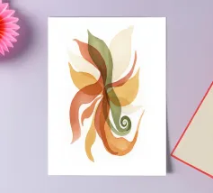 A minimalist abstract art print featuring flowing organic shapes in warm earthy tones such as terracotta, mustard yellow, olive green, and cream.