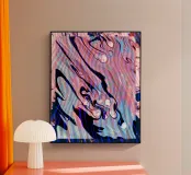 Trasformate il vostro spazio con la nostra splendida opera d'arte che presenta texture di marmo stratificate in un'accattivante miscela di colori vivaci e audaci come il rosa e il blu. Questo pezzo è una celebrazione del massimalismo, dove ogni strato di marmo crea un gioco dinamico di tonalità, invitando gli spettatori a esplorare la sua profondità e complessità.