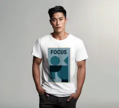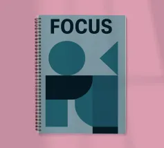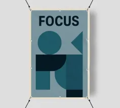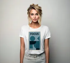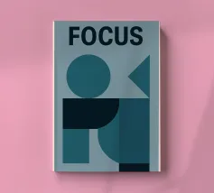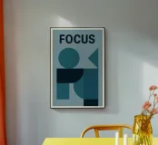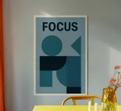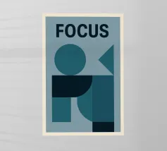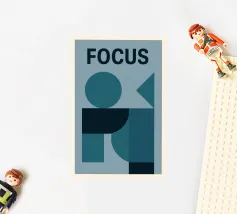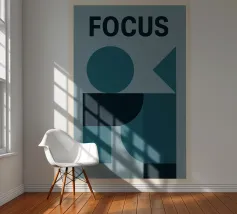 Poster dal design chiaro e moderno con la parola FOCUS. Le forme geometriche nei toni del blu attirano l'attenzione sull'essenziale: ideale per studi, uffici o spazi creativi.